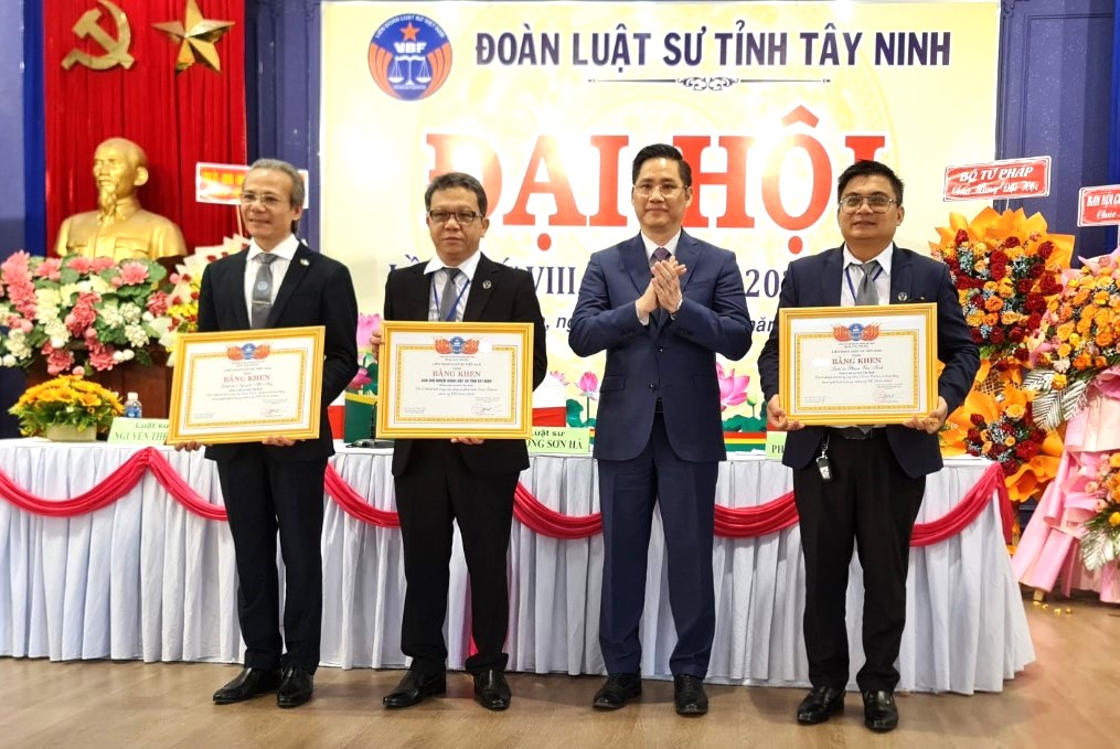 Nhân dịp này, Liên Đoàn Luật sư Việt Nam tặng bằng khen cho các Luật sư Vương Sơn Hà, Luật sư Nguyễn Thế Tân, Luật sư Phạm Văn Tình, có thành tích trong hoạt động, xây dựng và phát triển Đoàn Luật sư Tây Ninh nhiệm kỳ VII (2018-2023); tặng Bằng khen, giấy khen một số tập thể, cá nhân trong hoạt động hành nghề và trao kỷ niệm chương “Vì sự nghiệp phát triển Luật sư Việt Nam” cho luật sư Nguyễn Duy Hoàng, Luật sư Trần Thanh Hà.