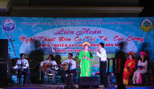 Tối 29.10, tại Trung tâm Văn hóa thể thao- Học tập cộng đồng xã Long Chữ, huyện Bến Cầu, Sở Văn hóa, Thể thao và Du Lịch Tây Ninh tổ chức liên hoan “Nghệ thuật đờn ca tài tử cải lương” tuyên truyền xây dựng nông thôn mới tỉnh Tây Ninh năm 2018.