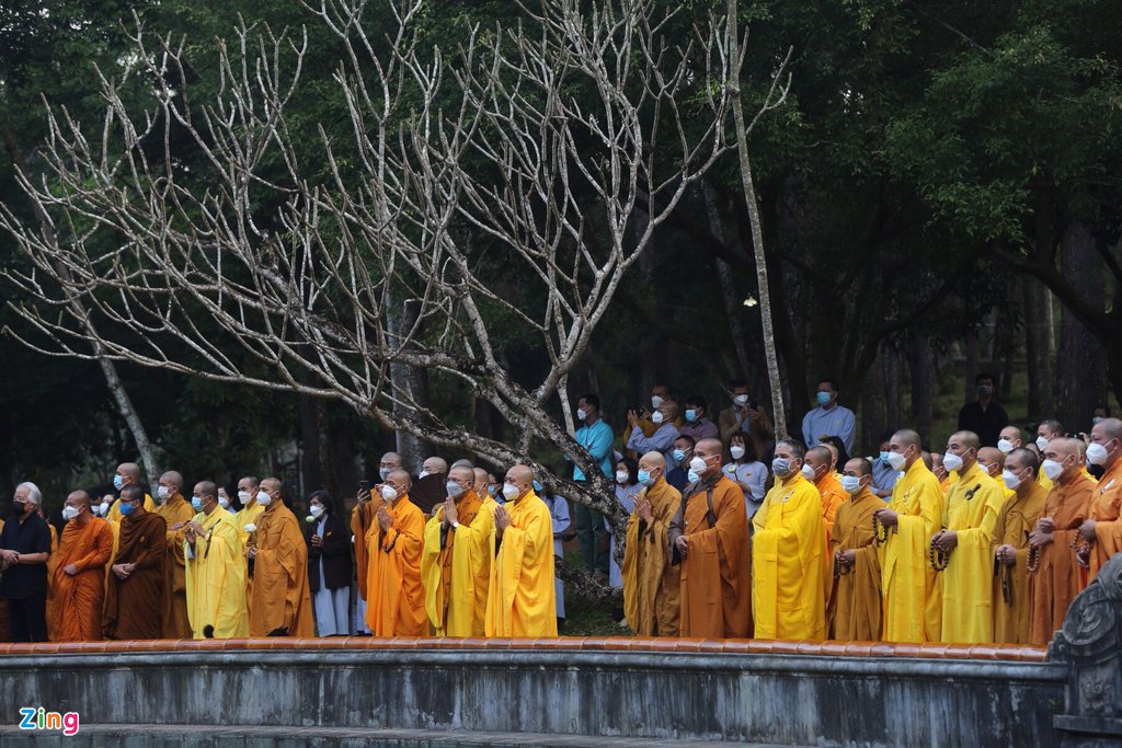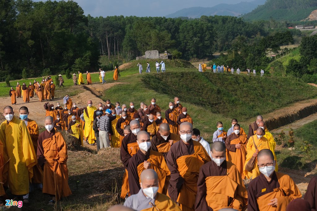 Gần 9h, linh cữu thiền sư Thích Nhất Hạnh được đưa đến Công viên nghĩa trang Vĩnh Hằng, Vườn Địa Đàng (TP Huế) hỏa táng theo di nguyện.