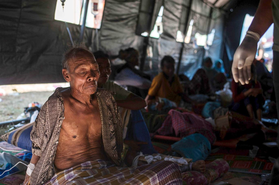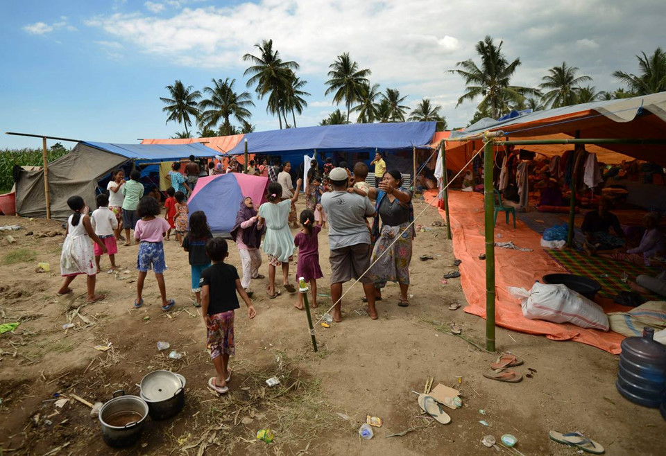 Một số người đã phàn nàn rằng họ không được để ý tới, hoặc phải nhận sự cứu trợ chậm chễ. “Không cứ sự hỗ trợ nào ở nơi này cả,” Multazam 36 tuổi nói. Anh và hàng trăm người khác đang sống dưới những tấm bạt trên một cánh đồng lúa khô bên ngoài làng Pemenang. Thời tiết khô hạn gần đây cũng góp phần cho việc thiếu nước sạch trầm trọng.