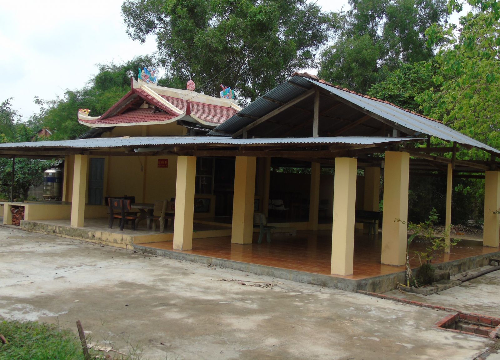 Phía trước chùa vẫn còn một cây sao cổ thụ. Ðây là cây do ông ngoại ông Lâm trồng khi mới lập chùa, nhưng đấy chỉ là cây nhánh mọc lại sau khi cây cối vườn chùa đã bị chiến tranh tàn phá. Cây sao này vẫn vươn cao lẫm liệt đầy khí thế, rủ bóng mát như của một rừng cây xuống sân chùa nhuôm nhoam màu gạch đỏ. Bên gốc cây, ai đó vừa bỏ một tấm bia mộ đá…