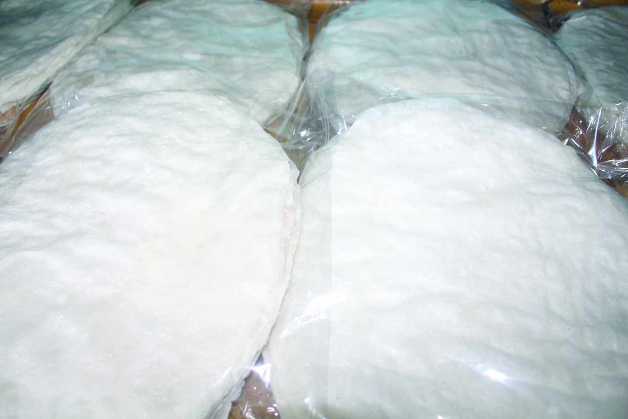 Bánh tráng thành phẩm sau khi ngấm sương đêm.