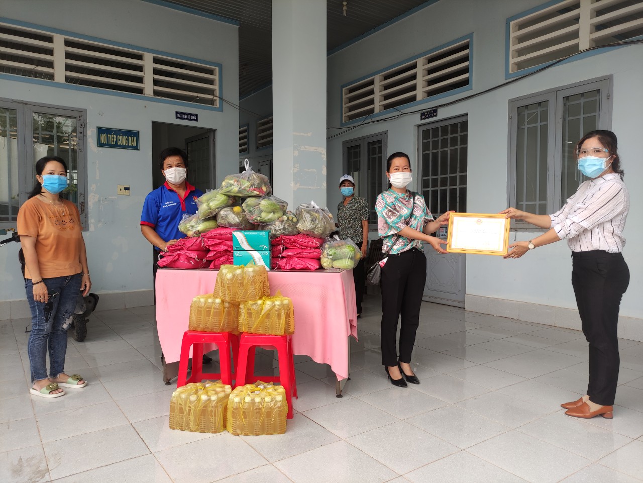 Hội Phụ nữ phường Hiệp Tân tiếp nhận quà của mạnh thường quân.
