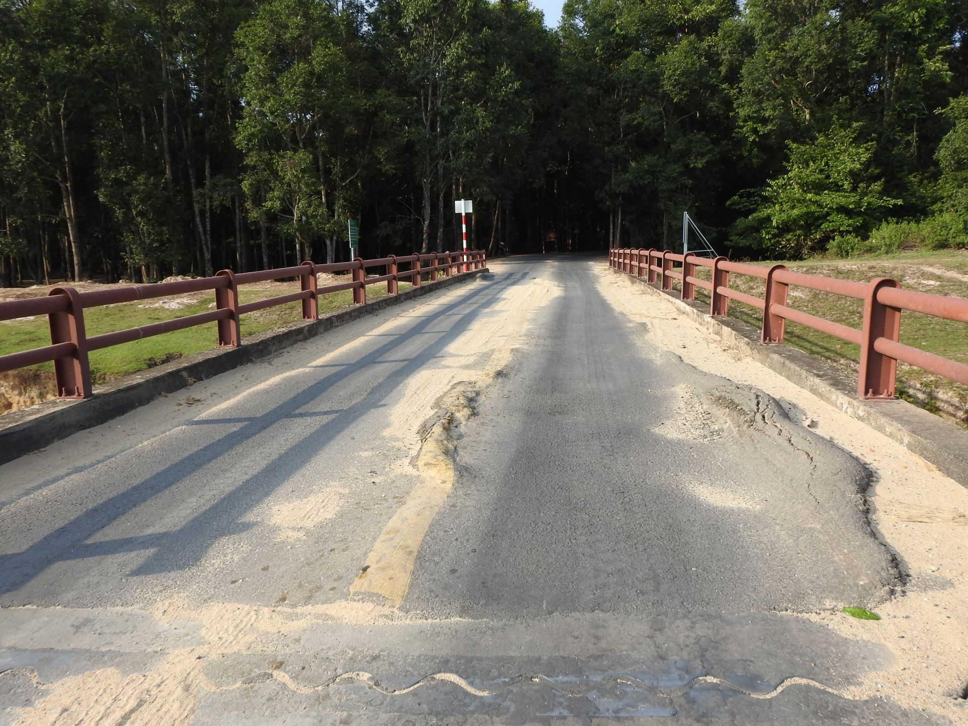 Mặt đường nhựa trên cầu Thống Nhất bị biến dạng.