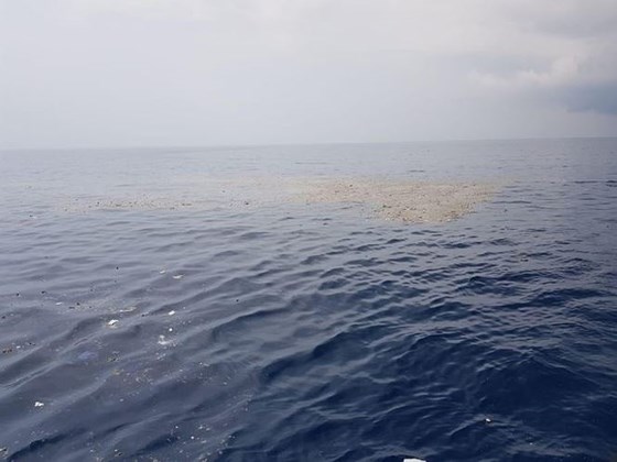 Vệt dầu loang được phát hiện gần địa điểm máy bay rơi. Ảnh: TWITTER