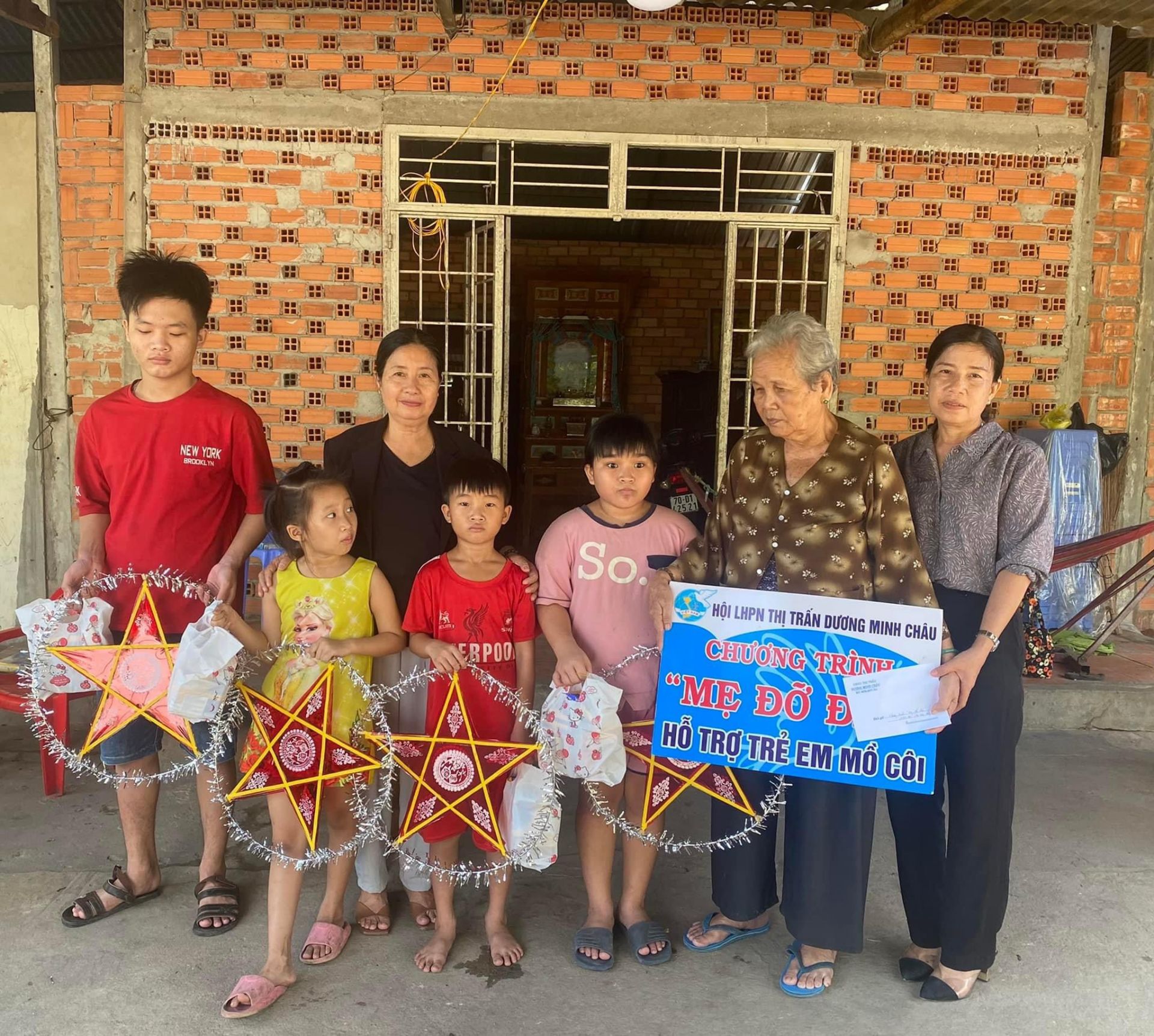 Hội LHPN thị trấn Dương Minh Châu đang nhận nuôi 5 trẻ em mồ côi. Và nhà thiết kế Huỳnh Bảo Toàn (Thành phố Hồ Chí Minh) là một trong những mạnh thường quân chương trình “Mẹ đỡ đầu” của Hội LHPN thị trấn Dương Minh Châu. Quê ở Tây Ninh, hằng năm, anh Toàn đều về địa phương ủng hộ quà tết cho người nghèo, tặng học bổng cho nữ sinh, tặng quà Trung thu cho trẻ em… với chi phí vài chục triệu đồng.