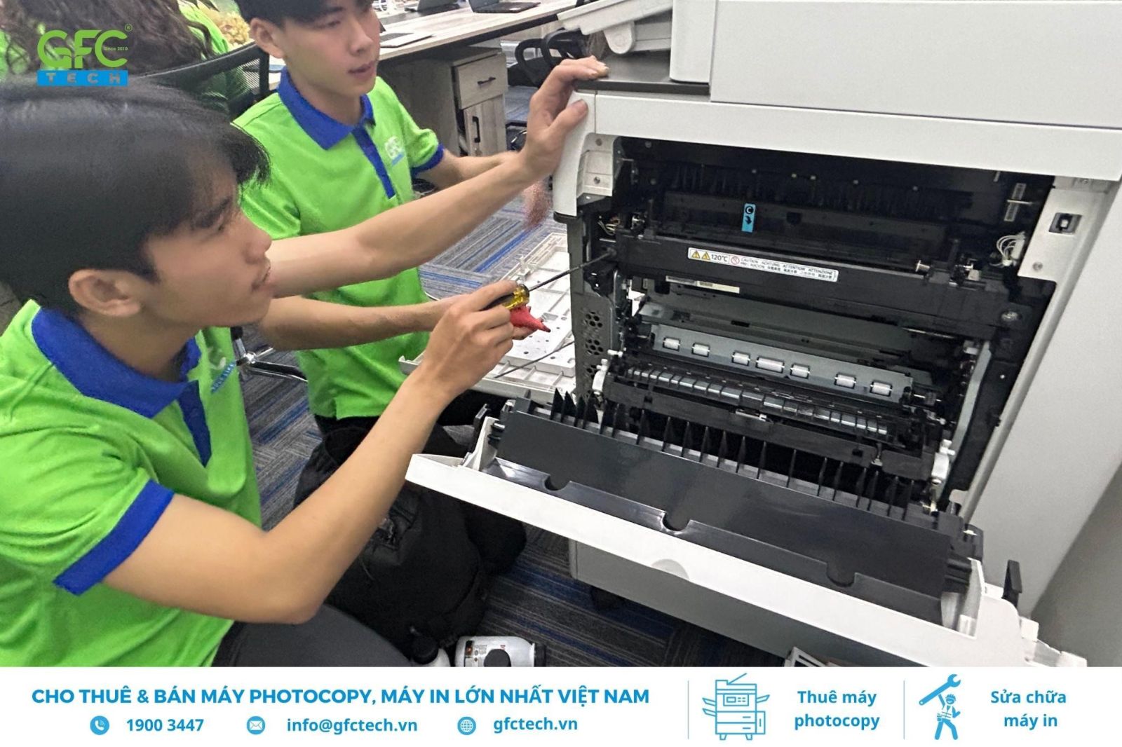 GFC Tech hỗ trợ sửa chữa máy in tại nhà, tận nơi trong ngày, kiểm tra lỗi miễn phí, cam kết không phát sinh chi phí phát sinh. Công ty chỉ sử dụng linh kiện chính hãng hoặc tương đương chất lượng cao và luôn có chính sách bảo hành rõ ràng sau khi sửa chữa.