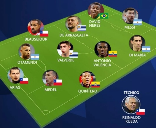 Uruguay có hai người, đều ở tuyến tiền vệ là Federico Valverde và Giorgian De Arrascaeta. Cái tên cuối cùng là cựu đội trưởng Man Utd, Antonio Valencia. Trên ghế HLV, Reinaldo Rueda của Chile bị Globo Esporte chỉ mặt khi không duy trì được lối đá chắc chắn dưới thời người tiền nhiệm Jorge Sampaoli.