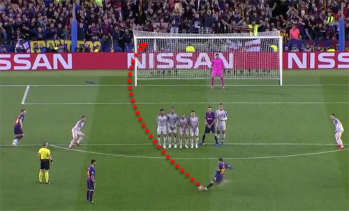 Pha sút phạt của Messi ở phút 82 có cự ly gần 30 m, khoảng cách hiếm khi đem lại bàn thắng. Độ khó trở nên lớn hơn do điểm đặt bóng gần như chính giữa so với hai cột dọc. Và nếu không có may mắn như Messi thừa nhận, bóng có thể đã đi sượt cột dọc, hoặc xà ngang rồi ra ngoài.