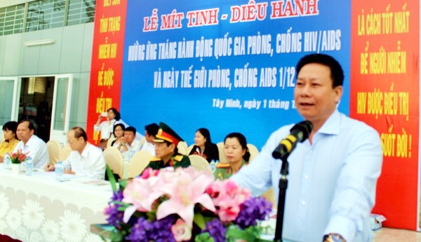 Sau lễ mít tinh, đoàn đã diễu hành, phát tờ rơi qua các tuyến phố trung tâm thành phố Tây Ninh để tuyên truyền về phòng chống HIV/AIDS trong nhân dân.