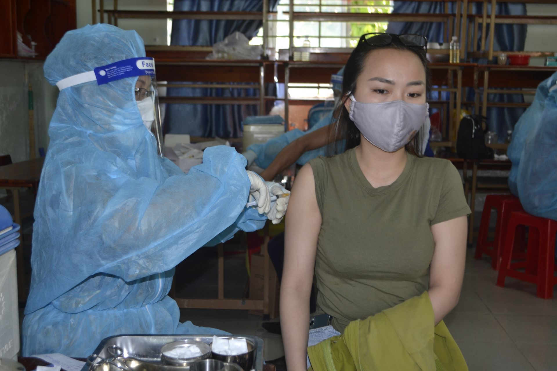 Người dân được tiêm vắc xin phòng Covid-19 tại thành phố Tây Ninh.