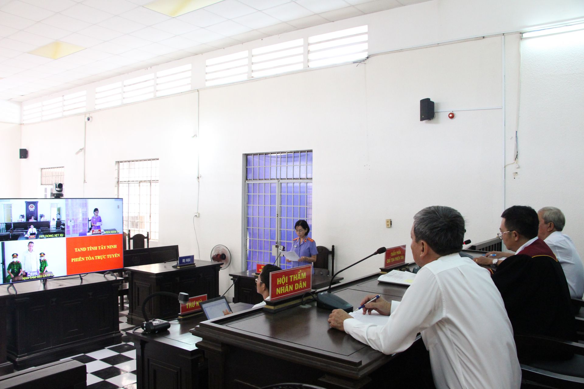 Phiên toà sơ thẩm được tổ chức theo hình thức trực tuyến, kết nối tại 2 điểm cầu là hội trường xét xử hình sự TAND TP. Tây Ninh và Nhà tạm giữ Công an TP.Tây Ninh (nơi có mặt bị cáo). Theo ghi nhận, phiên toà trực tuyến tổ chức nghiêm túc, trật tự; đường truyền mạng giữa các điểm cầu ổn định, hoạt động nhịp nhàng và hiệu quả.