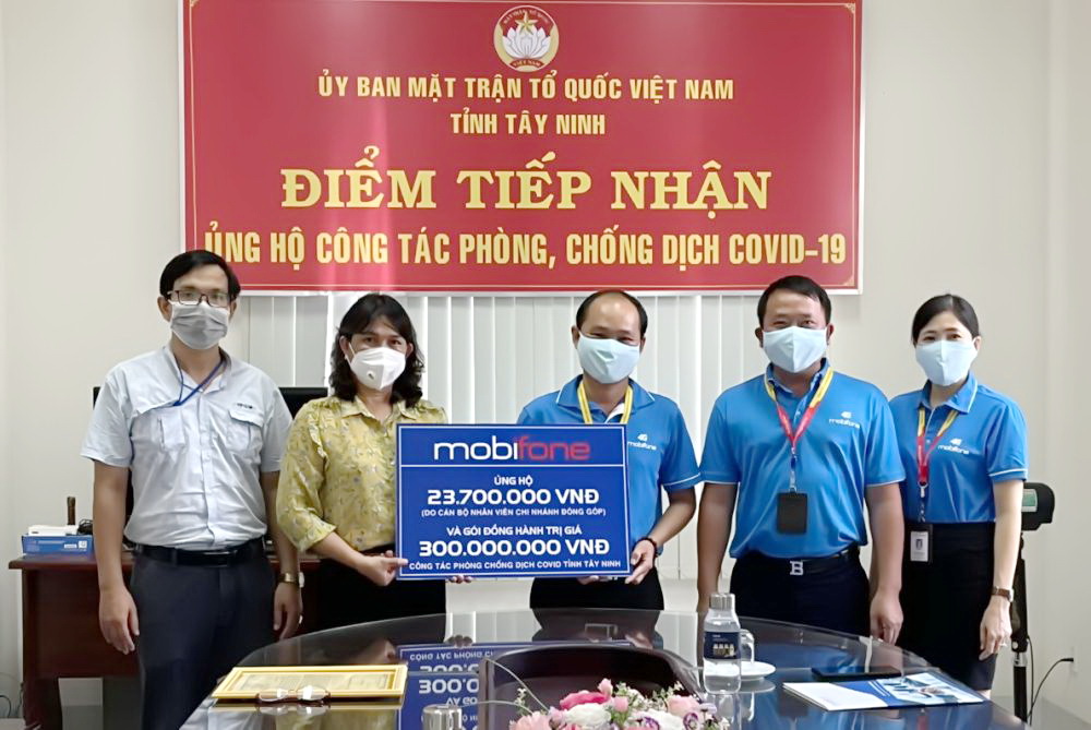 Mới đây, Mobifone Tây Ninh đã 23.700.000 đồng cho Ủy ban MTTQ Việt Nam tỉnh, số tiền này do các cán bộ, công nhân viên tại chi nhánh đóng góp. Đặc biệt, đơn vị còn ủng hộ gói đồng hành trị giá 300 triệu đồng cho công tác phòng chống dịch của tỉnh.