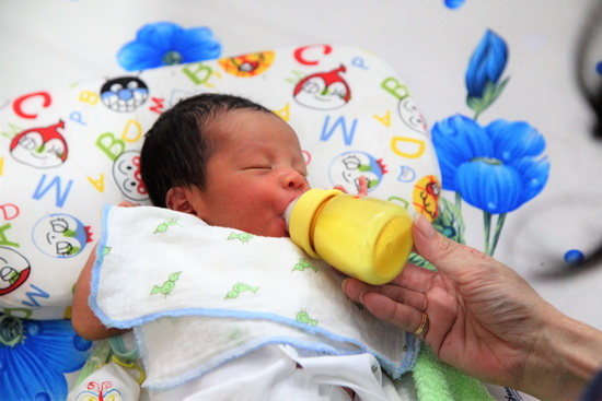 Hiện bé “Chuột con” được mẹ Gấm cho bú bình và bú sữa mẹ.