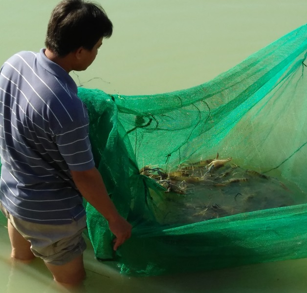 Khoảng 6 tháng, bắt đầu thu hoạch tôm, trước đó 5 ngày phải kích thích cho tôm lột. Theo ông Long, cách kích thích cho tôm lột cũng đơn giản, chỉ cần hạ mực nước trong ao xuống còn khoảng 30% hoặc dùng dây thuốc cá xay nhuyễn, pha nước rồi rải đều trong ao. Sau 2-3 ngày cho nước mới vào thì tôm sẽ lột vỏ. Trong giai đoạn này, cũng cần lưu ý phải thả chà cây để tôm có nơi trú ẩn.