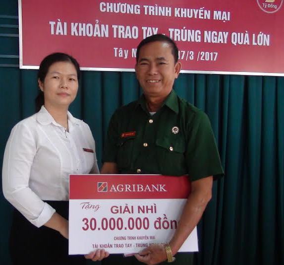 Ngân hàng Nông nghiệp và Phát triển nông thôn Việt Nam (Agribank) chi nhánh tỉnh Tây Ninh vừa tiến hành trao sổ tiết kiệm trị giá 30 triệu đồng cho ông Nguyễn Thành Sơn (SN 1956, ngụ ấp Lộc Tân xã Lộc Hưng huyện Trảng Bàng).