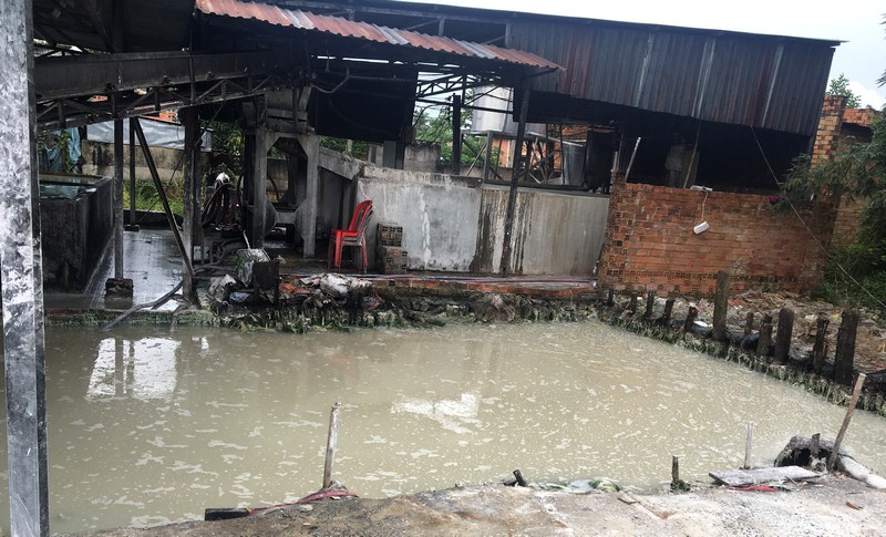 Hầm chứa nước thải nhà máy sản xuất mì gấm của ông Đoàn Thanh Tòng. |