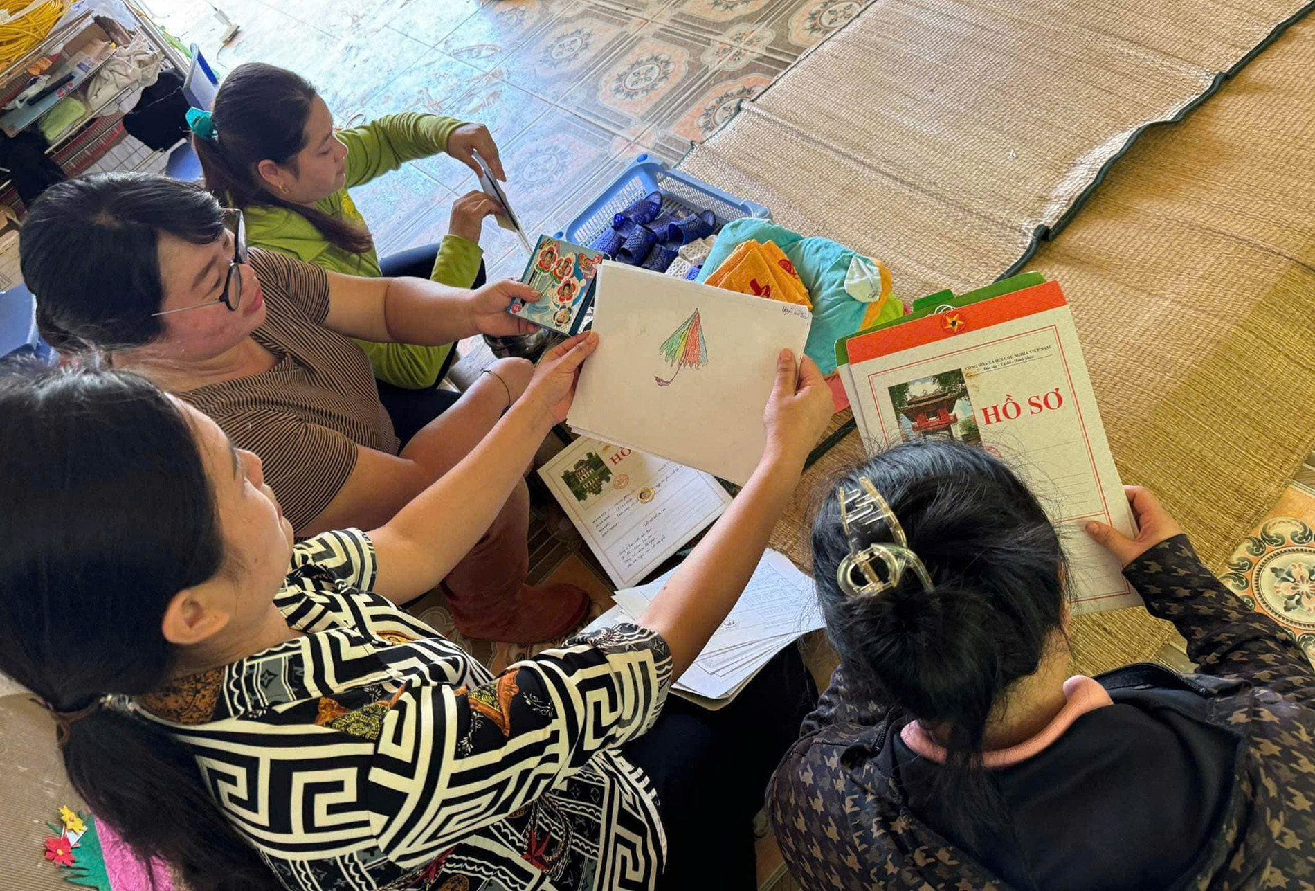 Cô Nự (bên phải) xem lại kỷ vật của các bé. Ảnh: Hoài Thương