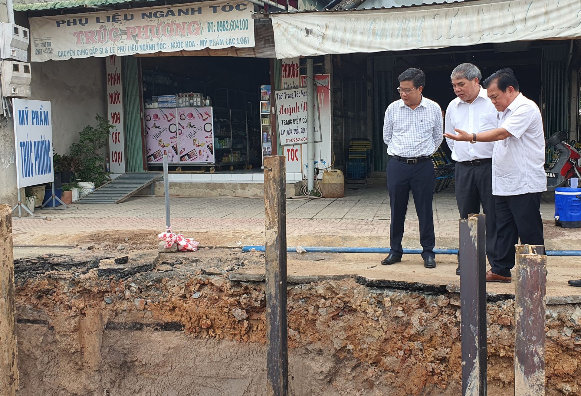 Đại biểu HĐND tỉnh khảo sát thực tế công trình thoát nước thị trấn Bến Cầu. Ảnh: Minh Dương