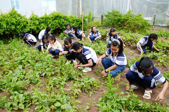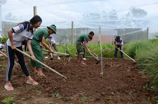 Cùng nhổ cỏ, lặt rau tại vườn rau của chiến sĩ.