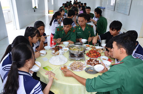 Cùng ăn trưa cùng cán bộ, chiến sĩ biên phòng.