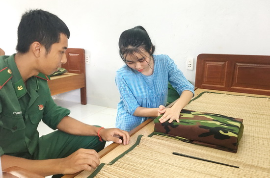Xem chiến sĩ xếp chăn mùng nội vụ.