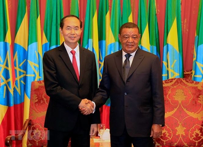 Chủ tịch nước Trần Đại Quang và Tổng thống Ethiopia Mulatu Teshome trong chuyến thăm vào tháng 8-2018.