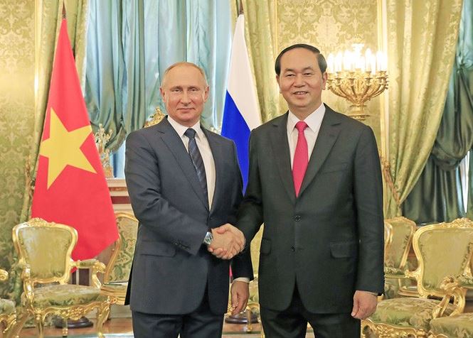 Chủ tịch nước Trần Đại Quang và Tổng thống Nga Vladimir Putin trong chuyến thăm cấp Nhà nước của Chủ tịch nước Trần Đại Quang đến Nga năm 2017.