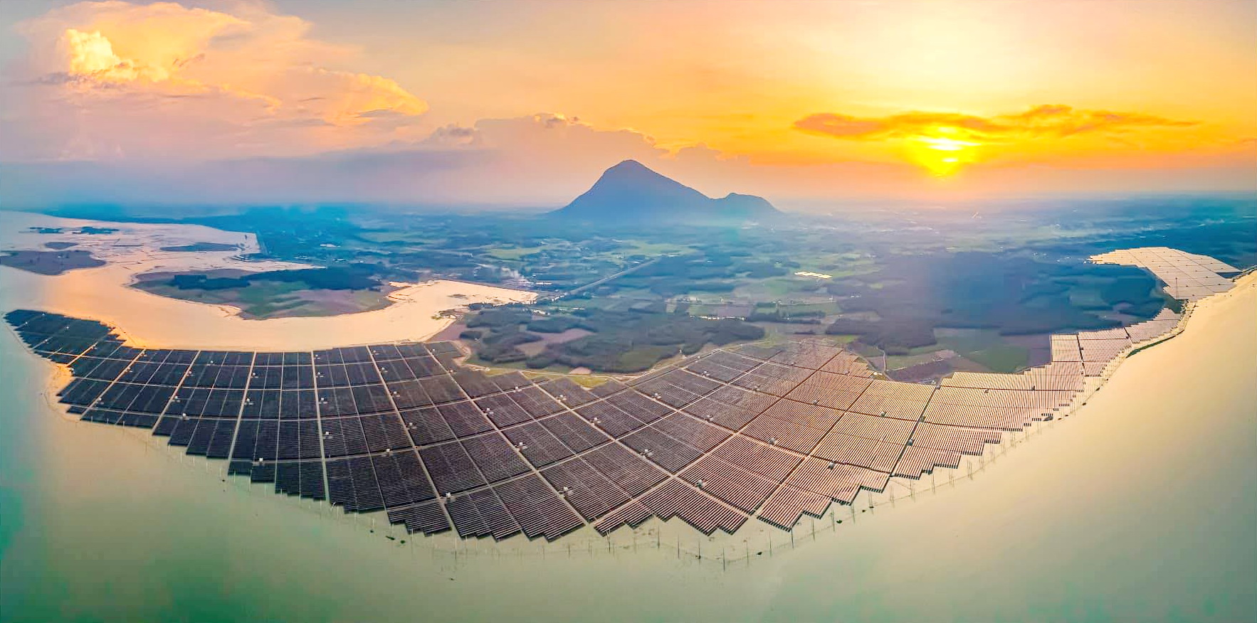 Nhà máy điện năng lượng mặt trời ở khu vực bờ hồ Dầu Tiếng, nằm trên địa bàn xã Tân Hưng, huyện Tân Châu. Ảnh: Dương Vĩnh Tuyên