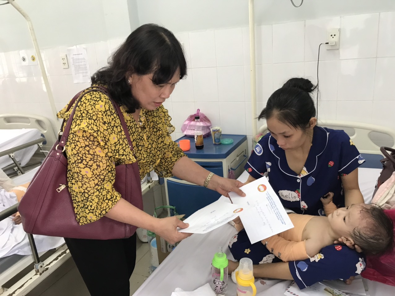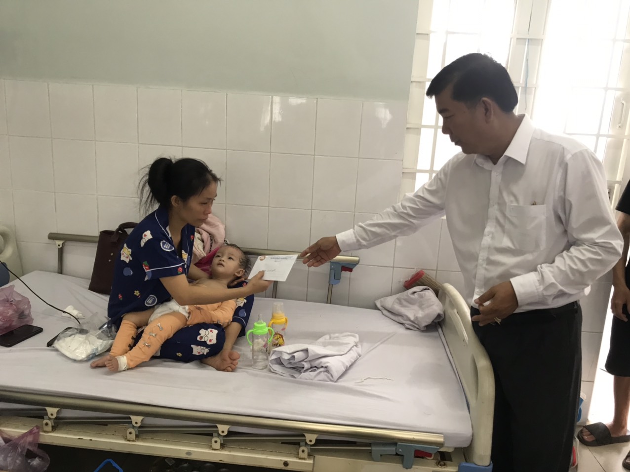 Đoàn đã thăm hỏi sức khoẻ các cháu, động viên gia đình cố gắng chăm sóc tốt cho các cháu. Thay mặt Ban Thường trực Uỷ ban MTTQ Việt Nam tỉnh, ông Nguyễn Văn Vy đã gửi số tiền hỗ trợ 8 triệu đồng để gia đình có thêm điều kiện điều trị cho các cháu.