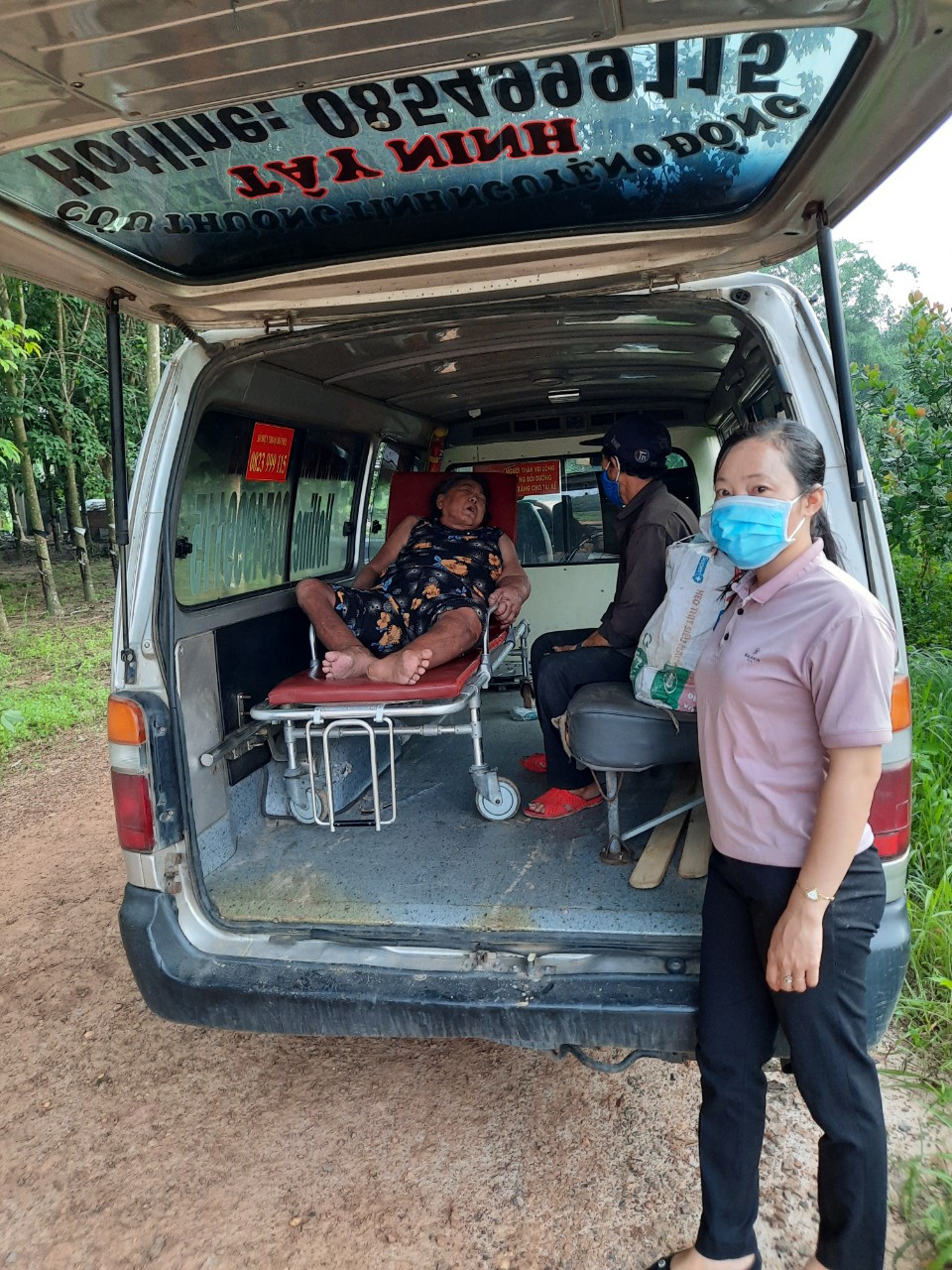 Vận động Đội Cứu Thương 0 đồng Tây Ninh hỗ trợ xe đưa đón bà Phường đi khám bệnh không tính tiền.