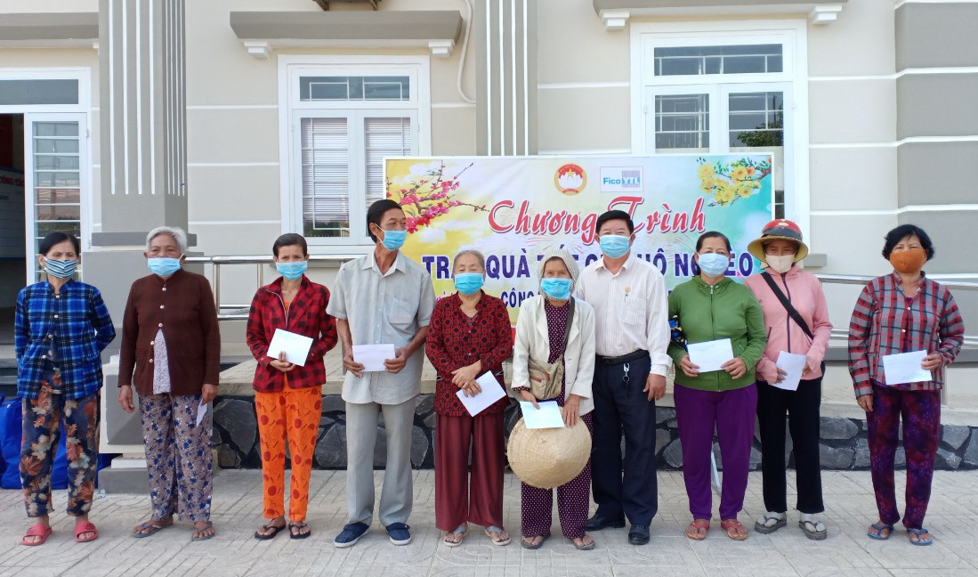 Trao quà cho hộ nghèo do công ty Xi măng Fico tài trợ.
