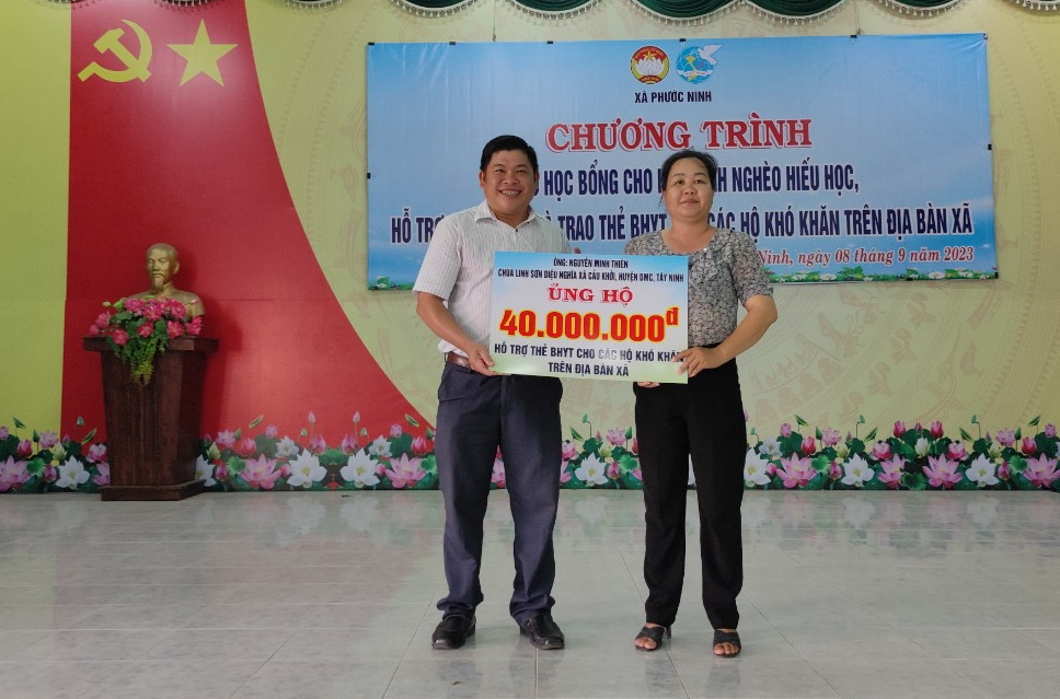 Chiều 8.9, Uỷ ban MTTQVN xã Phước Ninh (huyện Dương Minh Châu) tổ chức trao học bổng cho học sinh, tặng BHYT cho người dân.