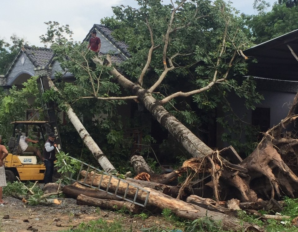 Cây Cao su bị lốc xoáy làm bật gốc ngã vào nhà dân.