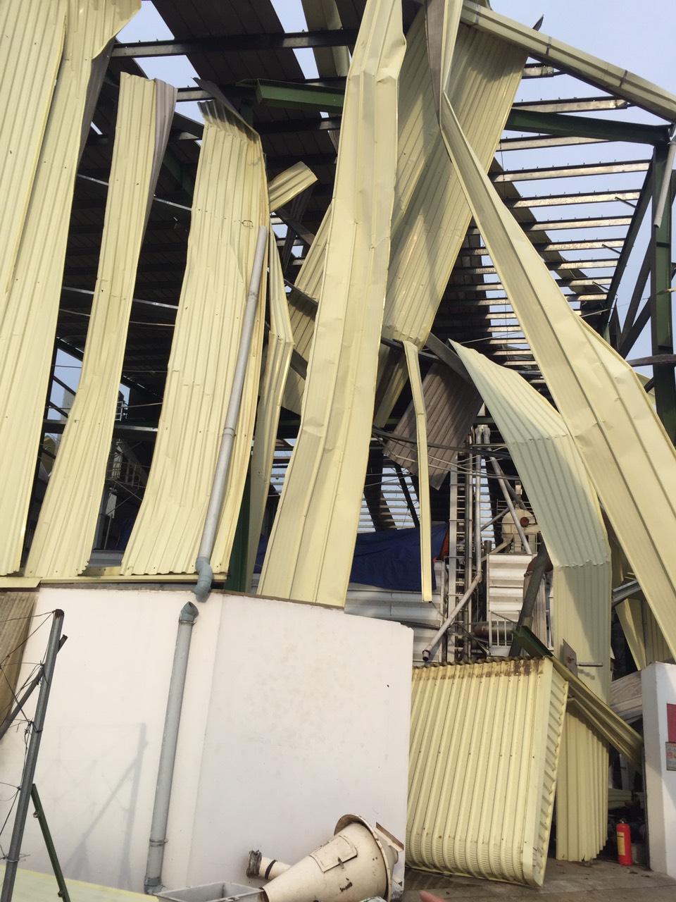 Nhà xưởng của Chi Nhánh Công ty Cổ phần Nông nghiệp thực phẩm Sài Gòn Mekong bị tốc mái.