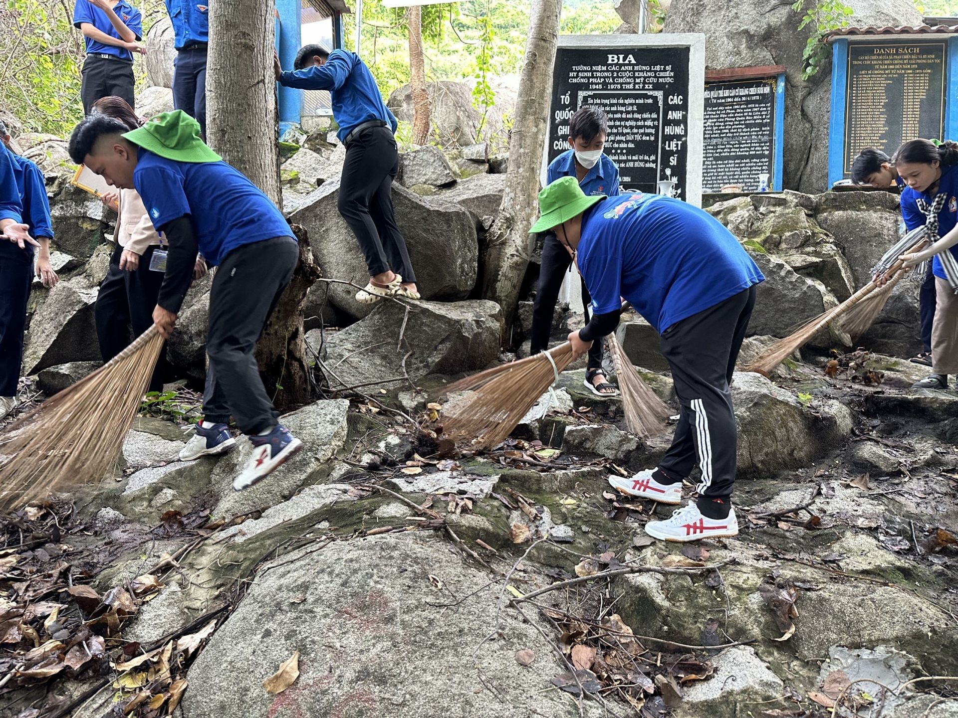 Chiến sĩ tình nguyện Phân hiệu Học viện Hành chính quốc gia tại TP.HCM tham gia dọn dẹp vệ sinh Căn cứ Suối Môn, huyện Dương Minh Châu.