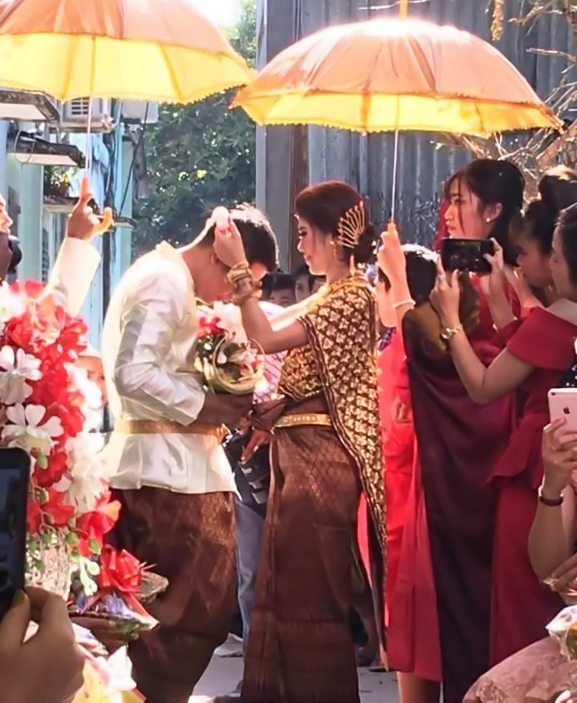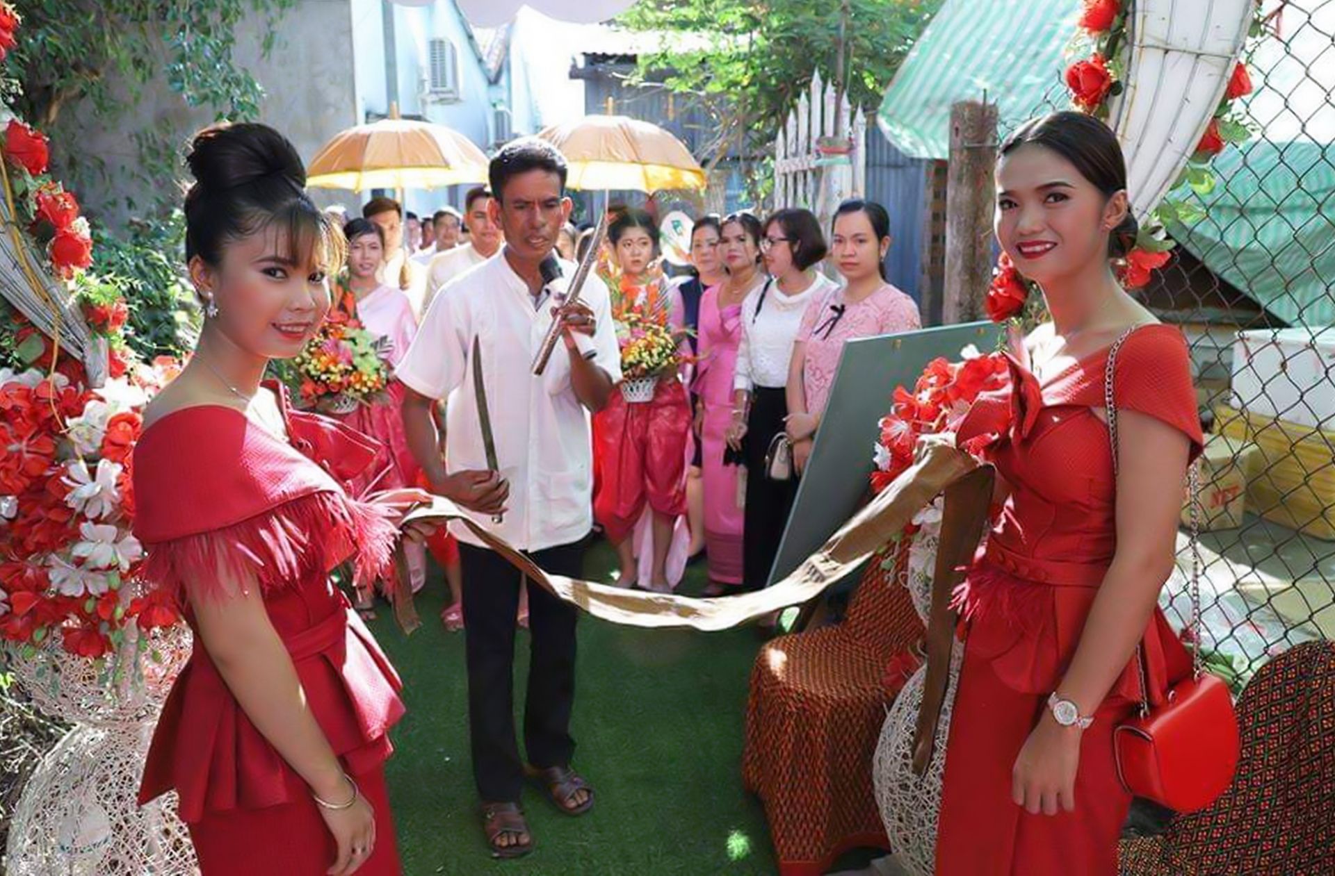 Ðàn trai phải tổ chức múa mở cổng rào bằng gai tre mới được vào nhà. Cuối cùng đám cưới cũng được diễn ra” (dẫn theo Lễ hội truyền thống của người Khmer Nam bộ - Tiền Văn Triệu - Lâm Quang Vinh, trang 56).