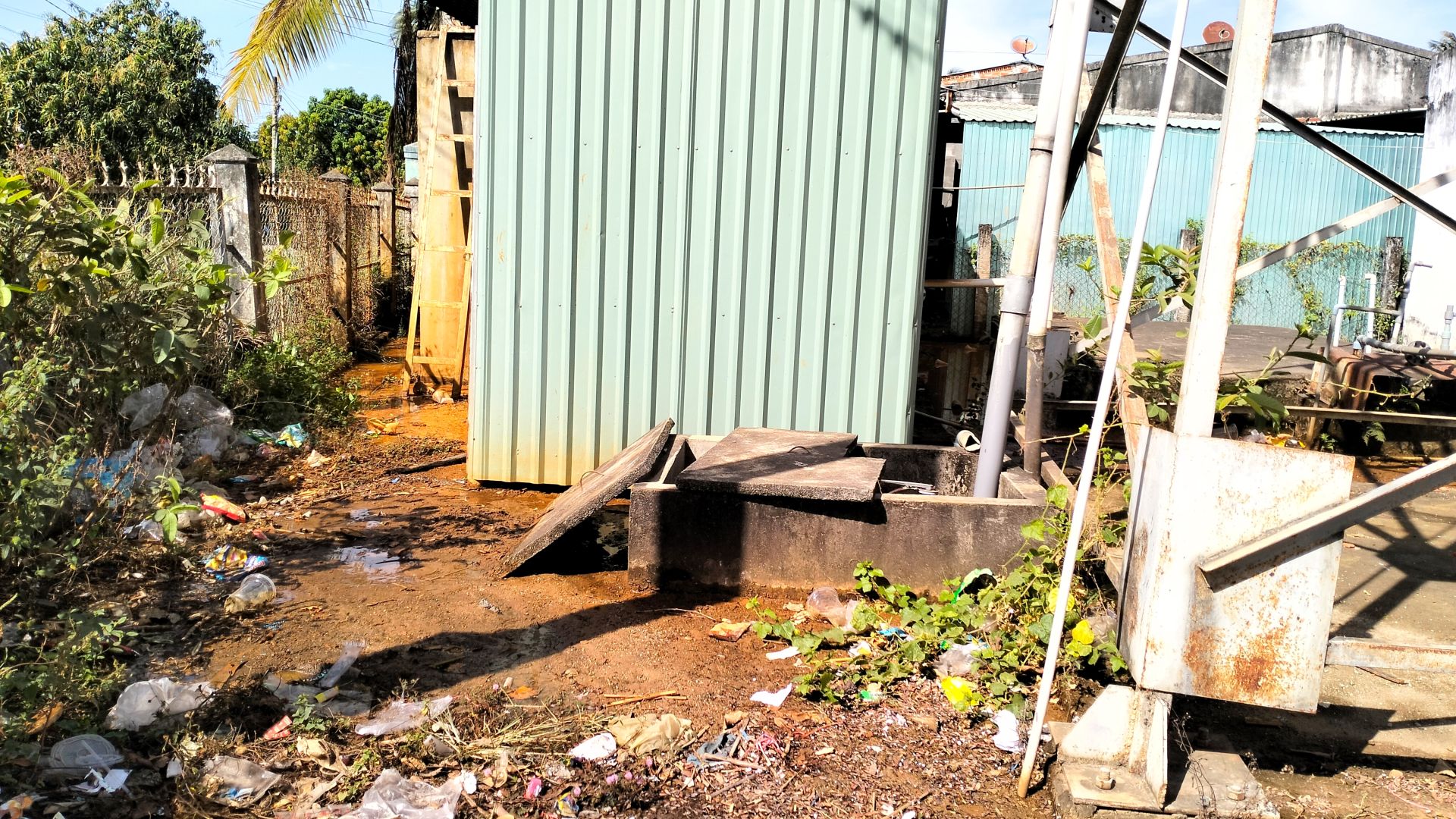 Có nhiều rác xung quanh trạm cấp nước.