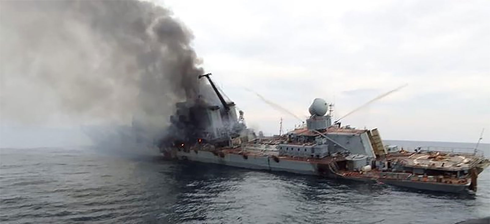 Giới chức Ukraine tuyên bố rằng một khẩu đội tên lửa đối hạm Neptune của nước này tại Odessa đã bắn trúng tuần dương hạm Moskva hai lần, khiến chiến hạm Nga bốc cháy.