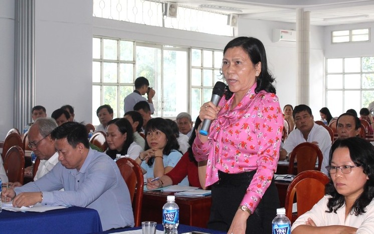Bà Trương Thị Phú- Phó Chủ tịch UBND huyện Gò Dầu đóng góp ý kiến tại hội nghị. |