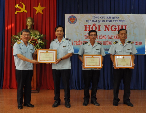 Phát biểu tại hội nghị, ông Nguyễn Dương Thái - Phó Tổng cục trưởng Tổng cục Hải quan ghi nhận và biểu dương kết quả đã đạt được của Cục Hải quan Tây Ninh. Thay mặt lãnh đạo Tổng cục Hải quan, ông Nguyễn Dương Thái trao tặng bằng khen của Bộ Tài chính, Bộ Quốc phòng cho các tập thể có thành tích xuất sắc trong thực hiện công tác năm 2018.