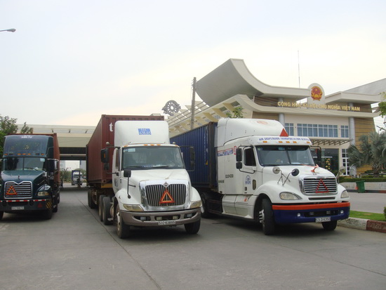 Các phương tiện qua lại CKQT Mộc Bài.