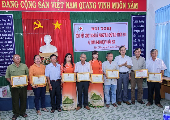 Nhân dịp này, Hội Chữ thập đỏ tỉnh đã khen thưởng cho nhiều tập thể, cá nhân thuộc Hội Chữ thập đỏ huyện Tân Châu do có thành tích trong công tác Hội và phong trào Chữ thập đỏ năm 2019.