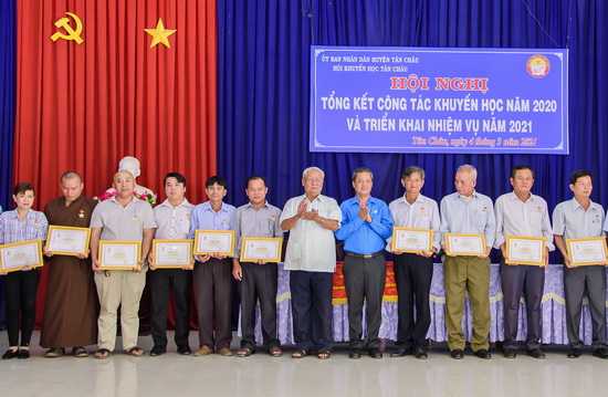 Nhân dịp này, Trung ương Hội Khuyến học Việt Nam tặng cờ thi đua đơn vị xuất sắc cho Hội Khuyến học huyện Tân Châu và tặng Kỷ niệm chương "Vì sự nghiệp khuyến học" cho 15 cá nhân; UBND tỉnh Tây Ninh, Sở Giáo dục và Đào tạo tặng bằng khen, giấy khen cho 3 tập thể và 3 cá nhân đã có thành tích xuất sắc trong xây dựng xã hội học tập trên địa bàn tỉnh giai đoạn 2014-2020. Hội Khuyến học tỉnh và huyện Tân Châu khen thưởng cho nhiều tập thể, cá nhân và gia đình đạt thành tích trong công tác khuyến học, khuyến tài, xây dựng xã hội học tập năm 2020.