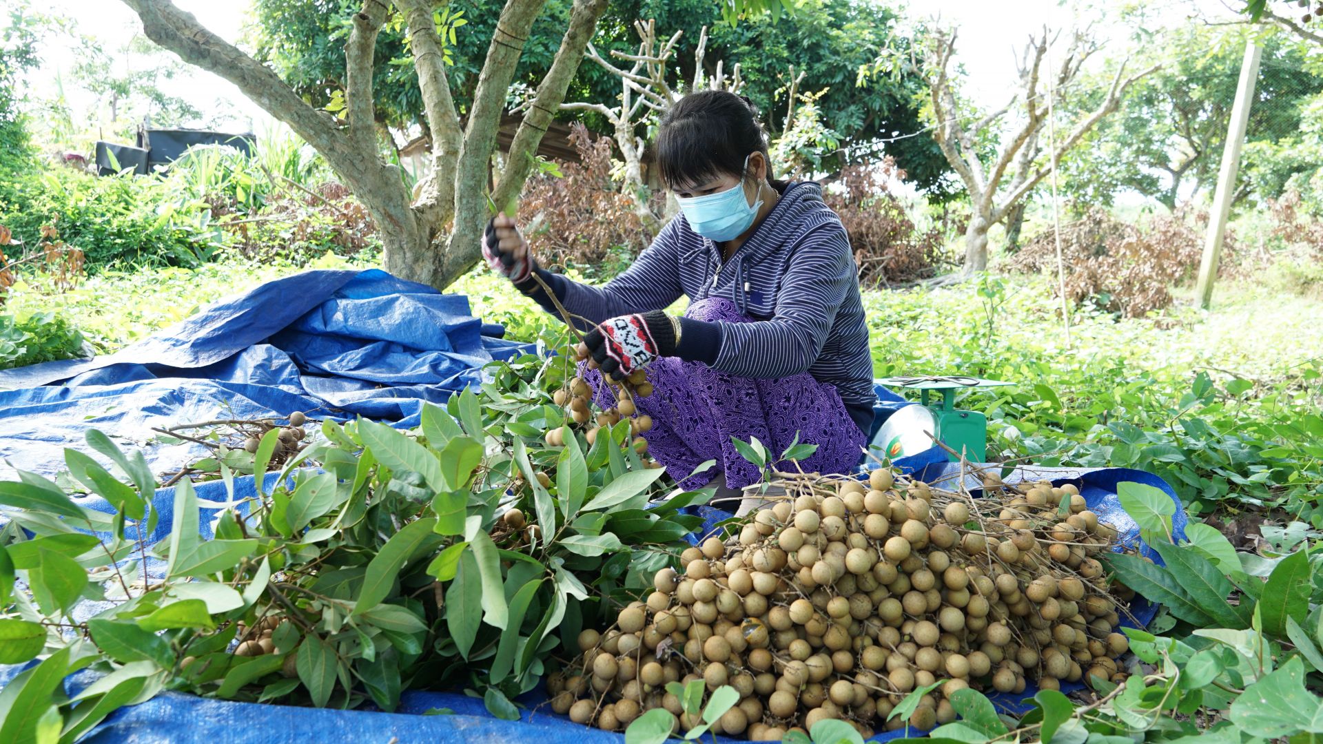 Nông dân thu hoạch nhãn.