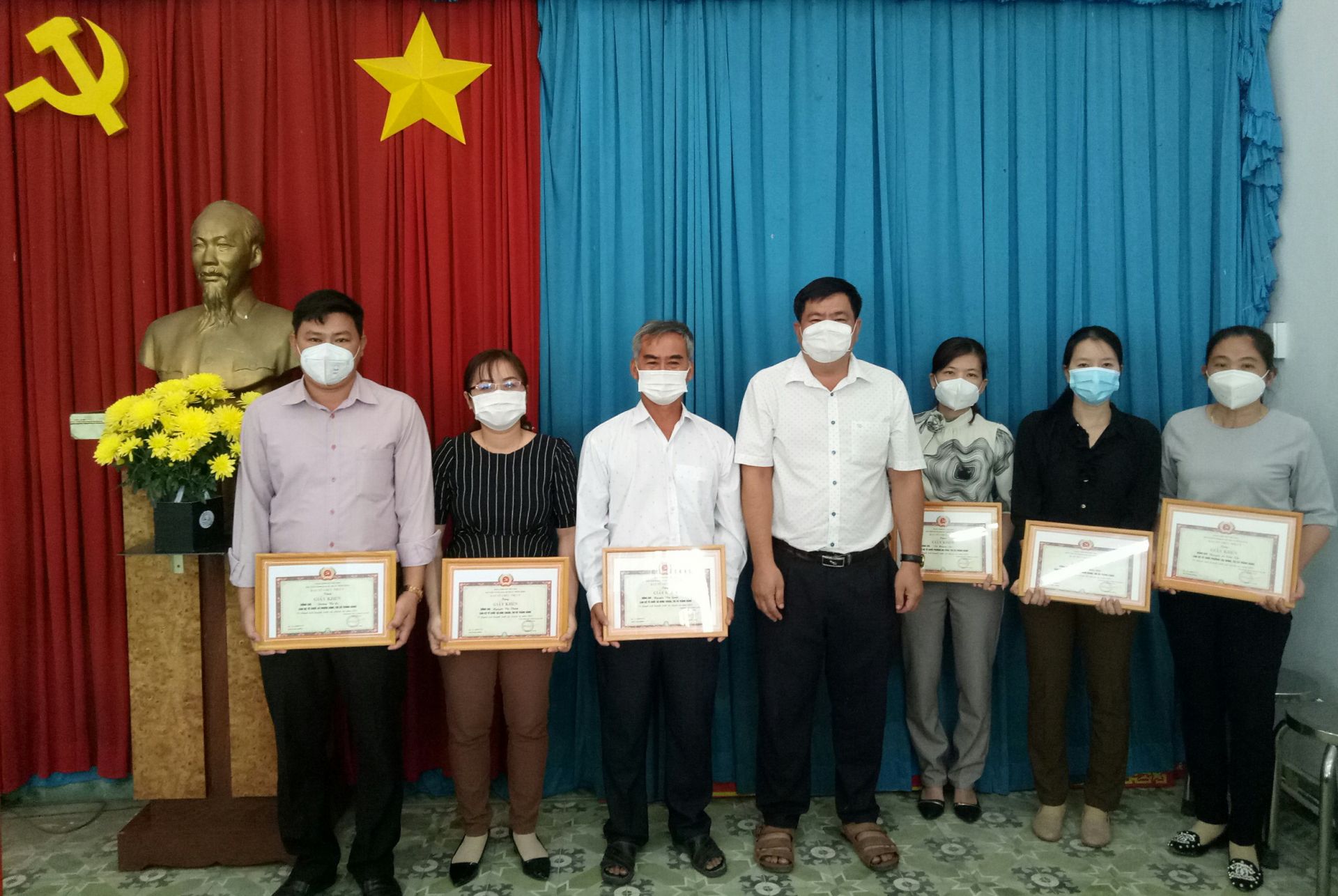 Ông Nguyễn Văn Ngách- Phó trưởng Ban Tổ chức Thị uỷ Trảng Bàng tặng giấy khen cho các cá nhân