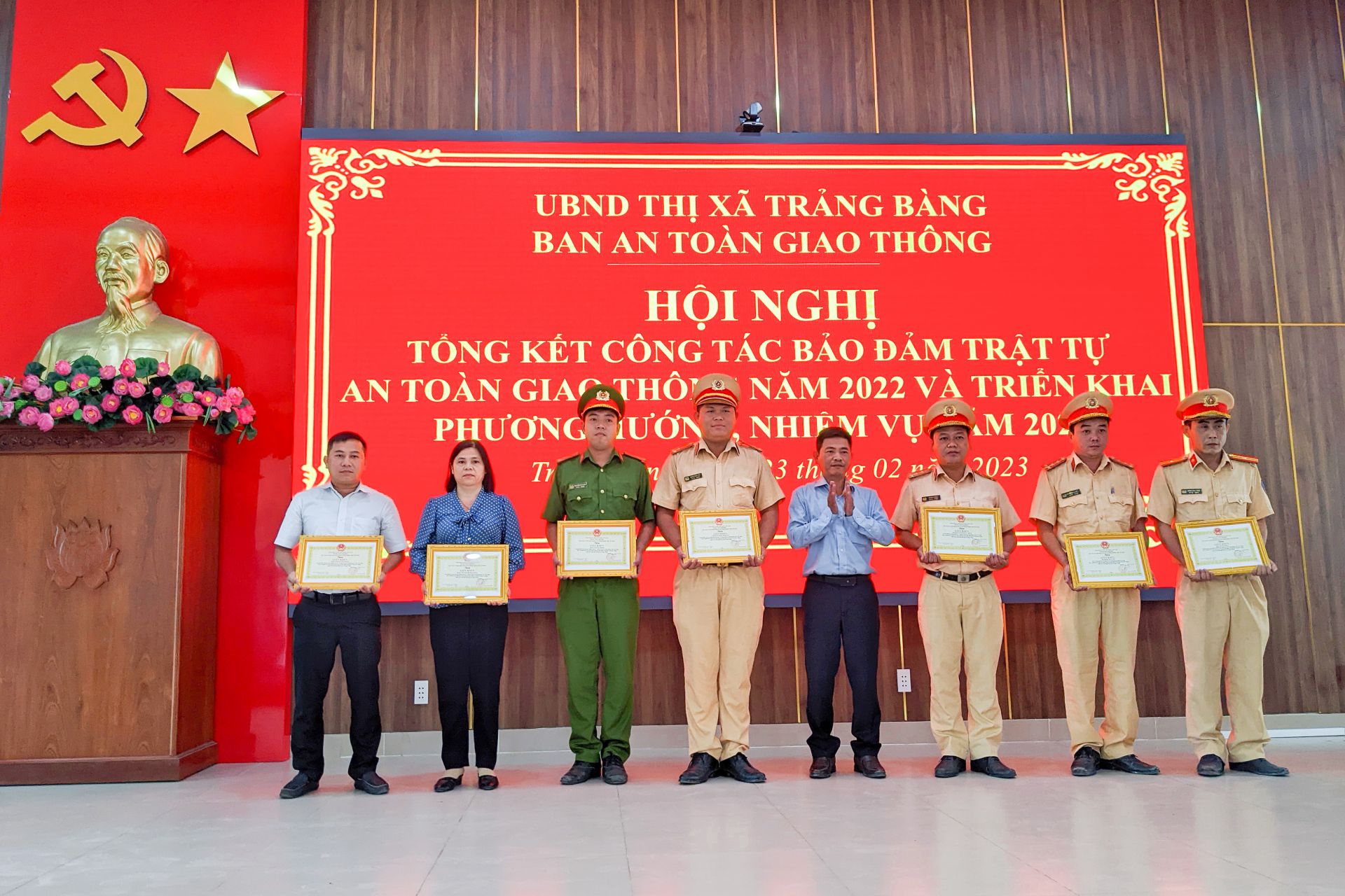 Dịp này, UBND Thị xã đã khen thưởng cho 7 tập thể, 14 cá nhân có thành tích xuất sắc trong thực hiện công tác bảo đảm trật tự an toàn giao thông năm 2022.