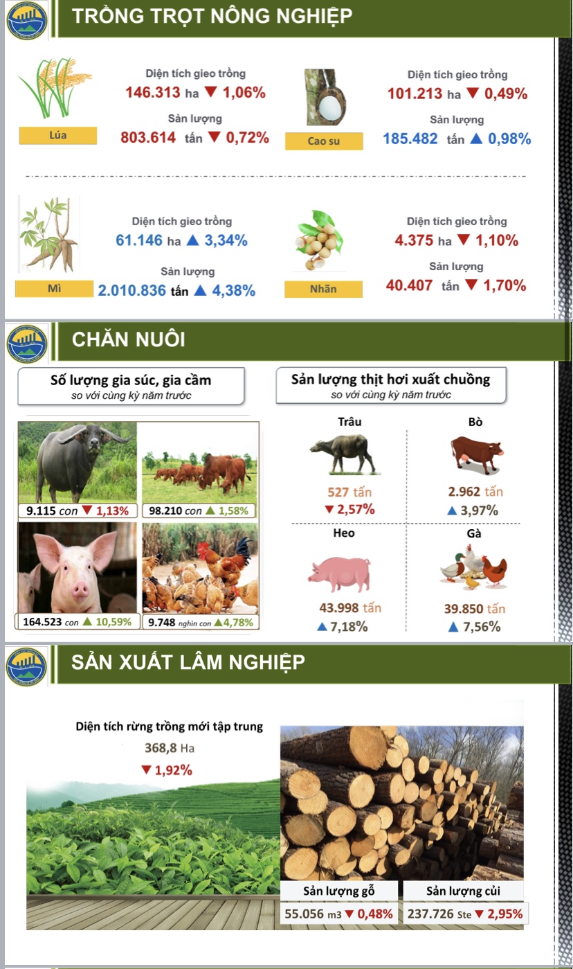 Tổng sản phẩm trên địa bàn tỉnh (GRDP) tăng trưởng cao 9,56%, giá trị tăng thêm (VA) các khu vực kinh tế đều tăng và có mức đóng góp vào tăng trưởng chung GRDP như: khu vực nông, lâm nghiệp và thuỷ sản tăng 2,70%, đóng góp 0,68 điểm % vào mức tăng trưởng chung; khu vực công nghiệp và xây dựng tăng 15,02%, đóng góp 5,87 điểm %; khu vực dịch vụ tăng 9,61%, đóng góp 2,92 điểm %; các khoản thuế sản phẩm trừ trợ cấp sản phẩm tăng 1,70% so cùng kỳ, cũng đóng góp 0,09 điểm % vào mức tăng trưởng chung.