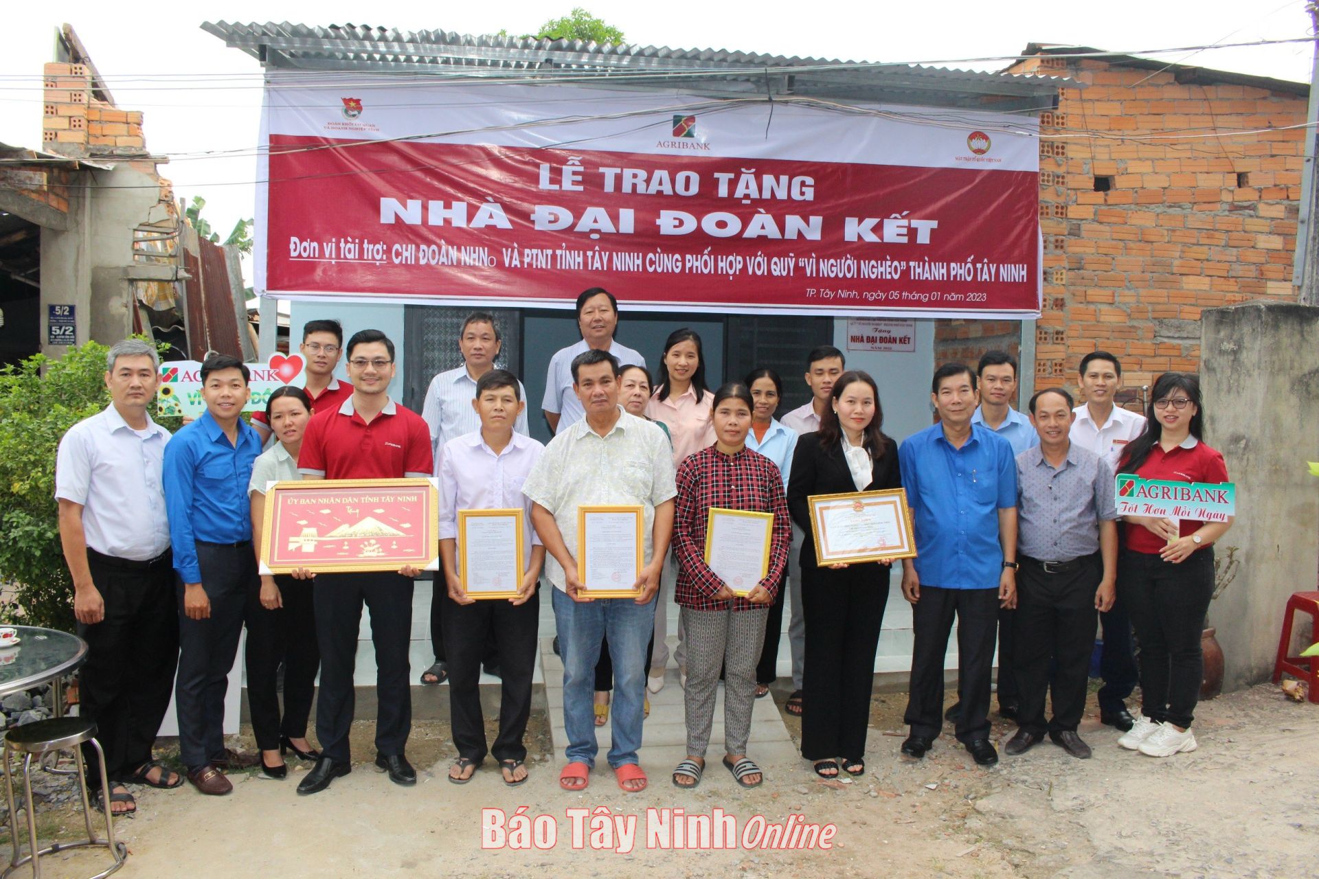 Arigbank Tây Ninh phối hợp với thành phố Tây Ninh trao tặng nhà đại đoàn kết cho gia đình khó khăn trong năm 2023.