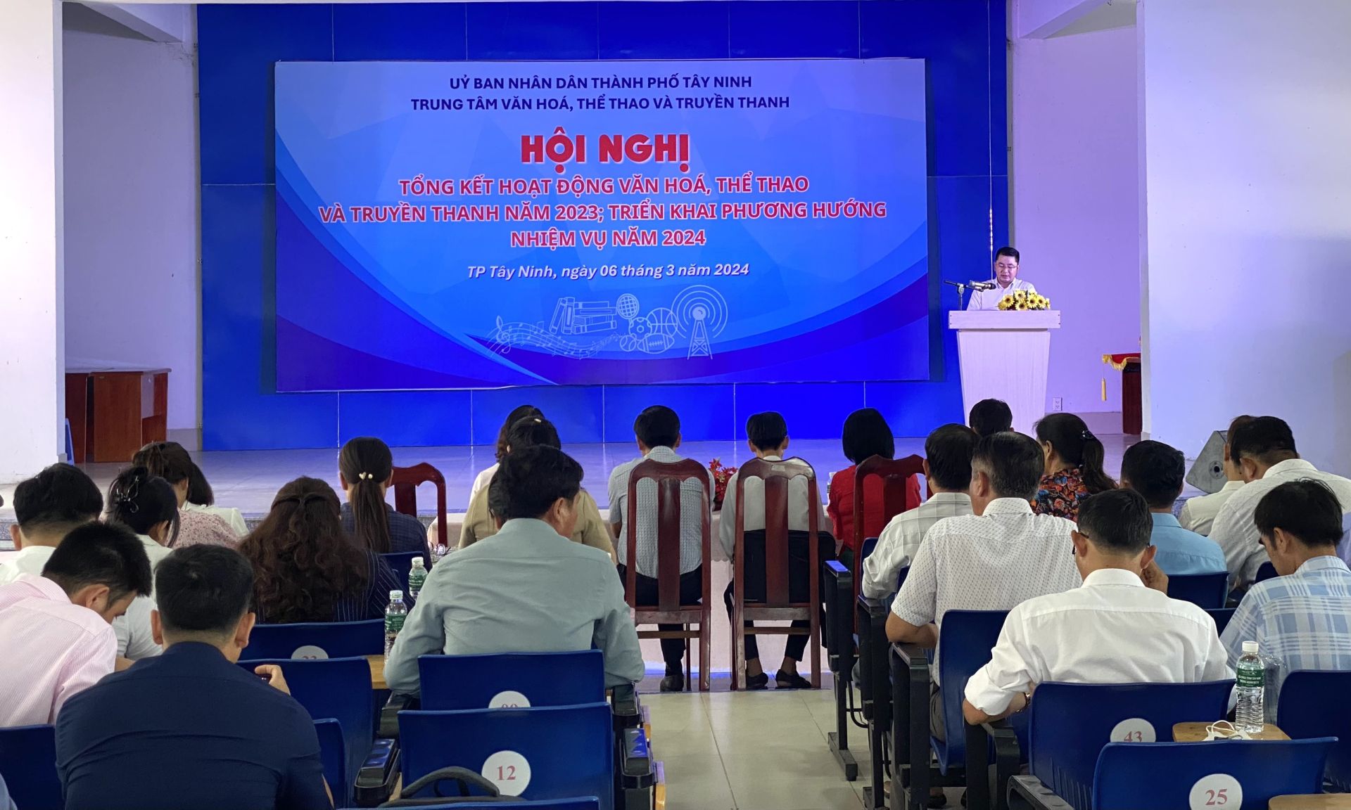 Vừa qua, Trung tâm Văn hoá, Thể thao và Truyền thanh thành phố Tây Ninh tổ chức hội nghị tổng kết hoạt động văn hoá, thể thao, truyền thanh năm 2023 và triển khai phương hướng, nhiệm vụ năm 2024.